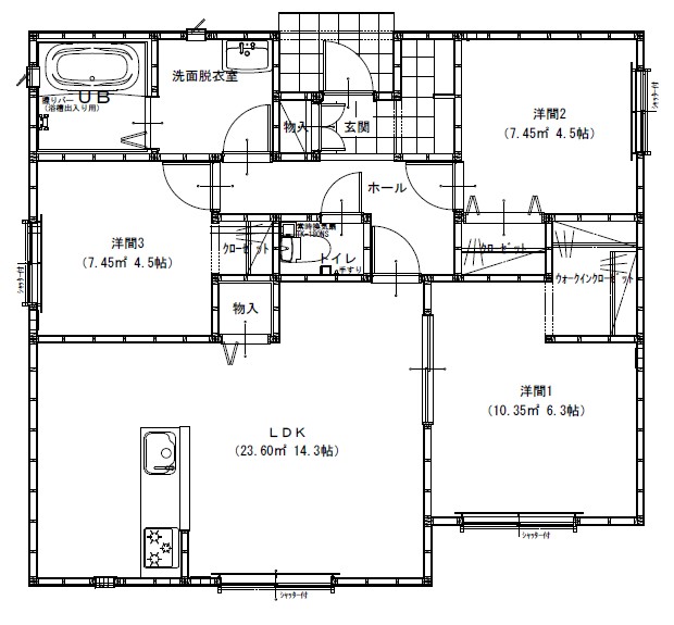 14.3帖LDK 7.45帖洋 6.3帖洋 4.5帖洋